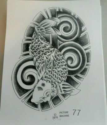 Vtg Rare 1976 Picture Machine Tattoo Flash Sheet 77 Large Koi Ebay